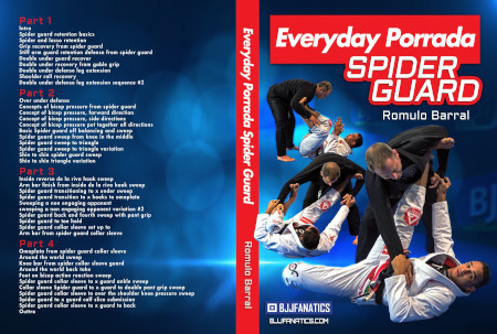 Nos dois primeiros volumes, Romulo aprofunda os conceitos de retenção e recuperação de guarda usando os ganchos de aranha, de maneiras que ele usa contra alguns dos melhores passadores do mundo há anos. Ele tem defesas para todos as passagens mais comuns, dando a você um roteiro fora de perigo na próxima vez que sua guarda estiver sendo ameaçado.