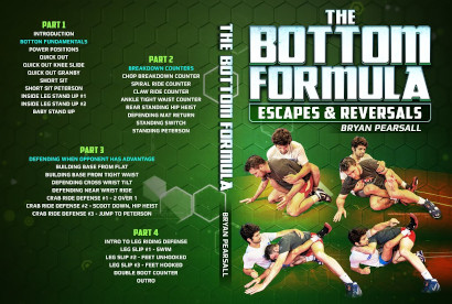 The Bottom Formula é uma série de 4 partes que oferece uma abordagem repetível para encontrar uma maneira consistente de sair ou inverter a partir da parte inferior. Não fique amassado por contra atacar. O colapso é uma das primeiras táticas que a pessoa que está por cima usará para tentar derrubá-lo de barriga. Use contra ataques criativos que farão você abrir espaço e se levantar novamente. Contra ataque controles comuns como cintura apertada, garra de ferro e muito mais!