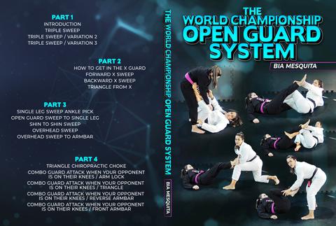 O Sistema de Guarda Aberta do Campeonato Mundial começa cobrindo uma das técnicas de Bia da Guarda Aberta, a Raspagem Tripla. É aqui que você começa a aprender o poder da Guarda Aberta, enquanto Bia muda sua perspectiva para ser ofensiva da posição em vez de esperar que as coisas aconteçam. O Triple Sweep também tem múltiplas variações para lhe dar uma abordagem completa de ataque no momento da luta.