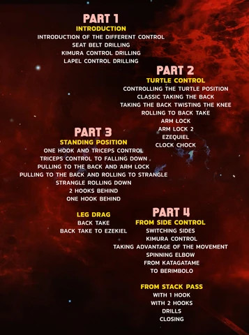 Encontre o seu caminho para pegar as costas com as técnicas e estratégias de Nicholas Meregali para atacar pelas costas o tempo todo. A montada das costas é a posição mais dominante do grappling, e agora você pode aprender todas essas maneiras eficazes de assegurar as costas que Nicholas usa nos níveis de elite da competição.